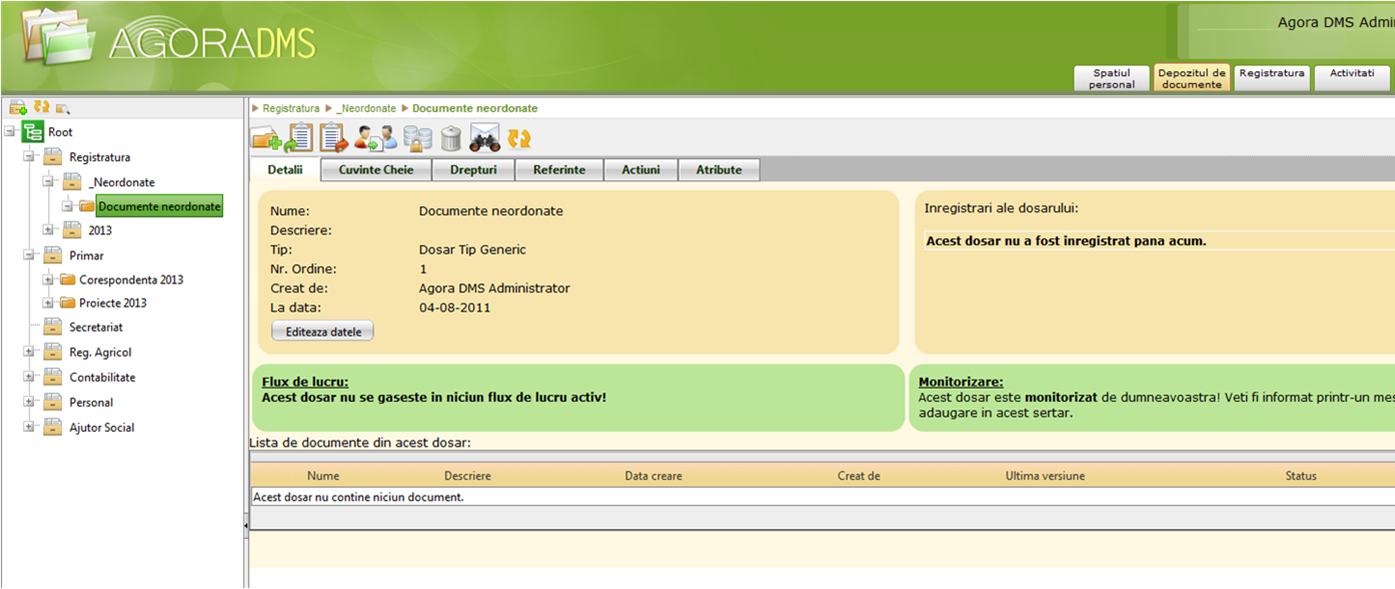 AgoraDMS este o soluție integrată pentru managementul documentelor și a fluxului de sarcini. De asemenea conține și un modul de Registratură, în jurul căruia se poate organiza tot fluxul de lucru.