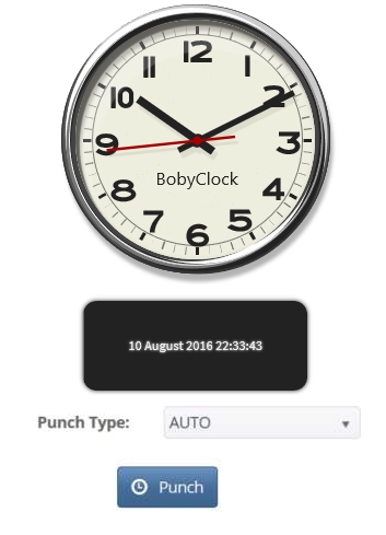Prin BobyClock angajații pot vizualiza IN sau OUT cu un singur clic pe browserul web sau pe mobil. De asemenea, sistemul se integrează cu un terminal de proximitate sau un terminal biometric, în care angajatul poate face pumn folosind cititor de carduri, cititor de amprente, recunoașterea feței sau recunoașterea venelor.