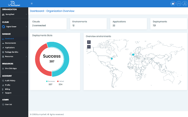 Bunnyshell e o platforma de automatizare de procese devops de la creare de servere instant in mai multe clouduri (aws, digital ocean, azure) fara sa trebuiasca sa cunosti specificatiile fiecarui cloud in parte, la provizionare si deployment (mai multe tipuri, in functie de nevoile tale: all at once, immutable, rolling, rolling with additional batch, blue/green).