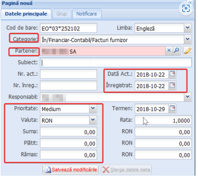 Evidența documentelor |
