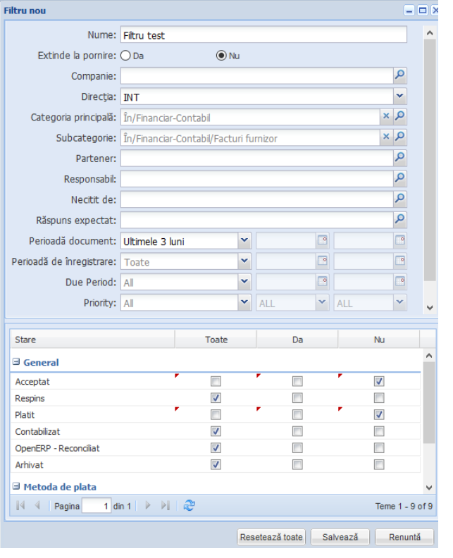 Filtre și notificări |
