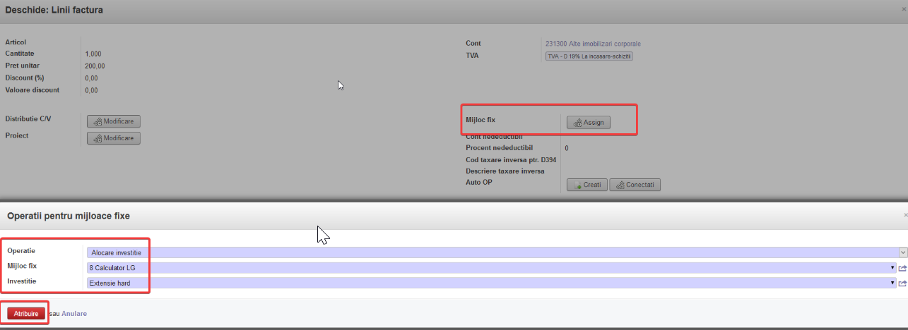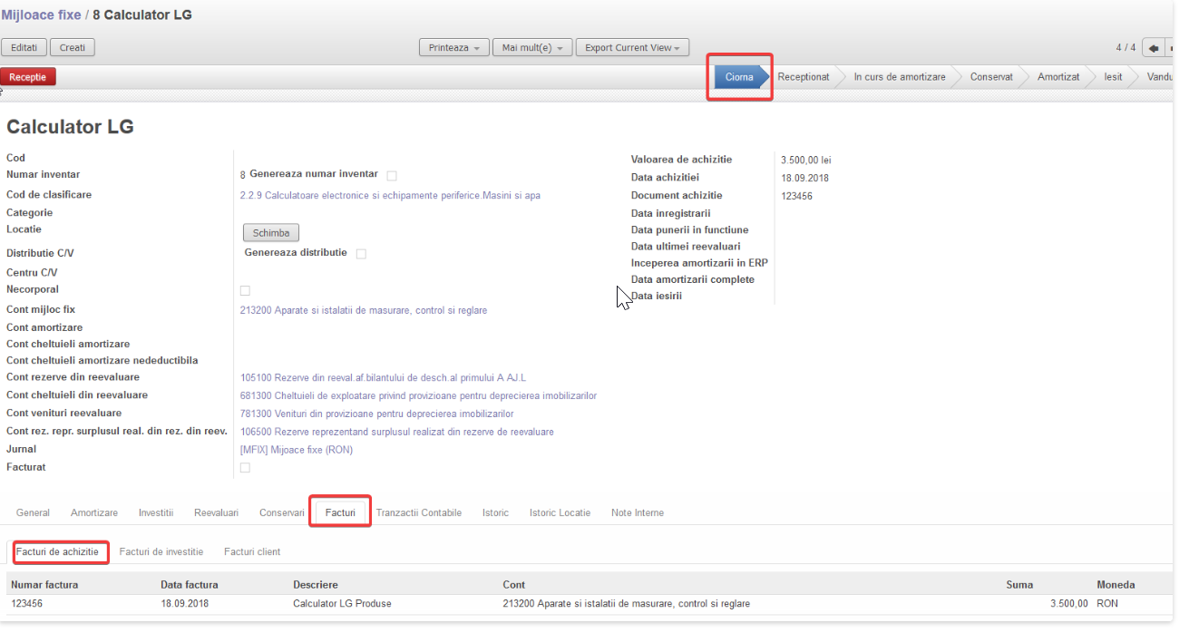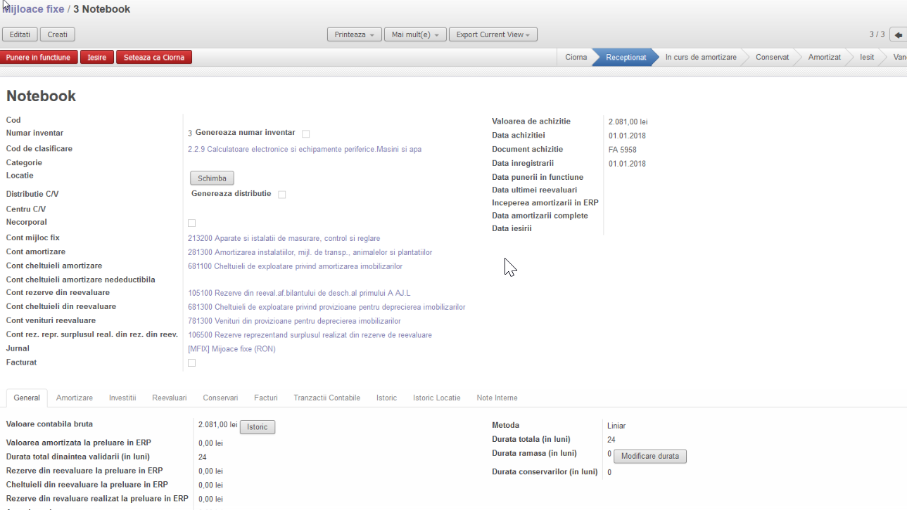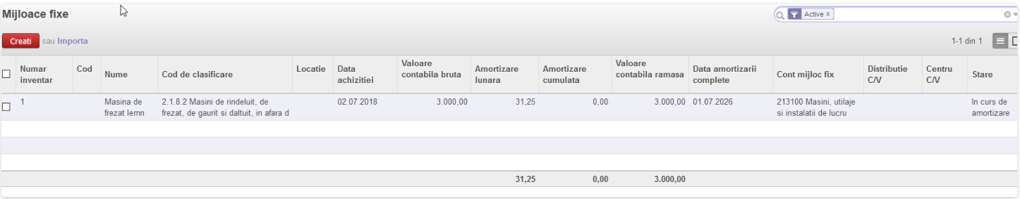 Meniu intuitiv pentru înregistrarea mijloacelor fixe.