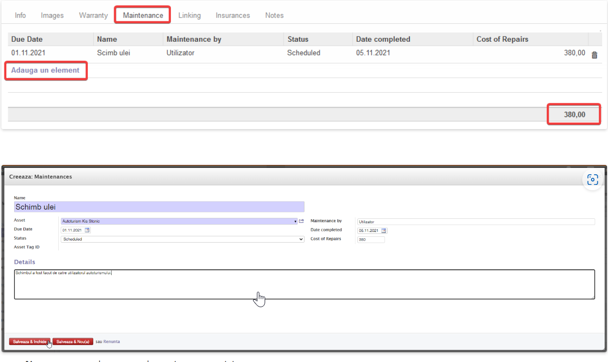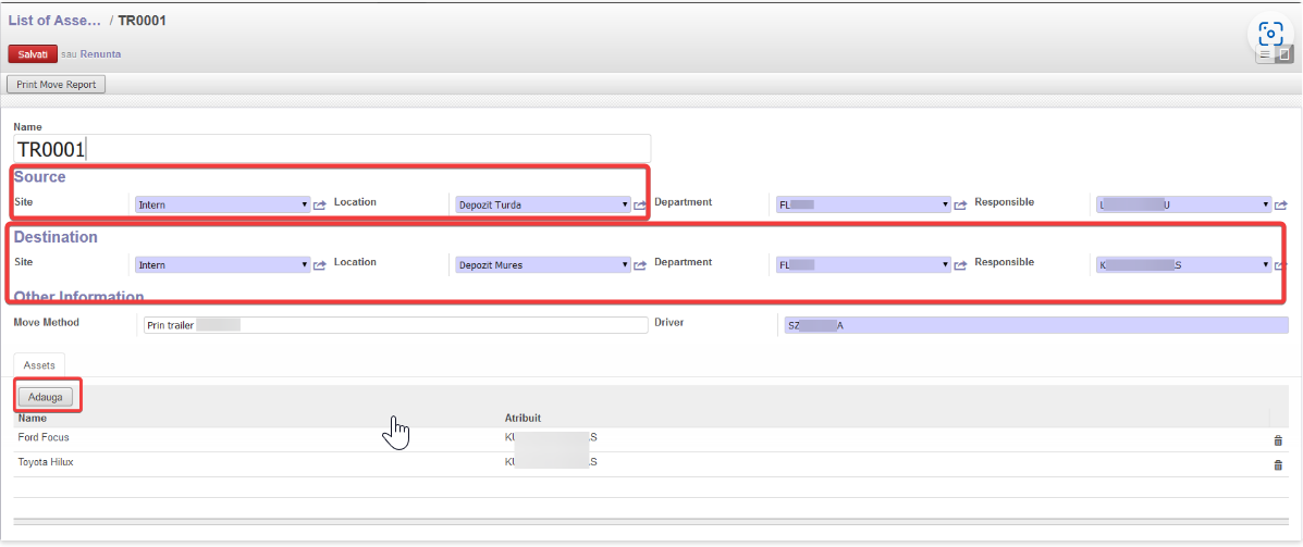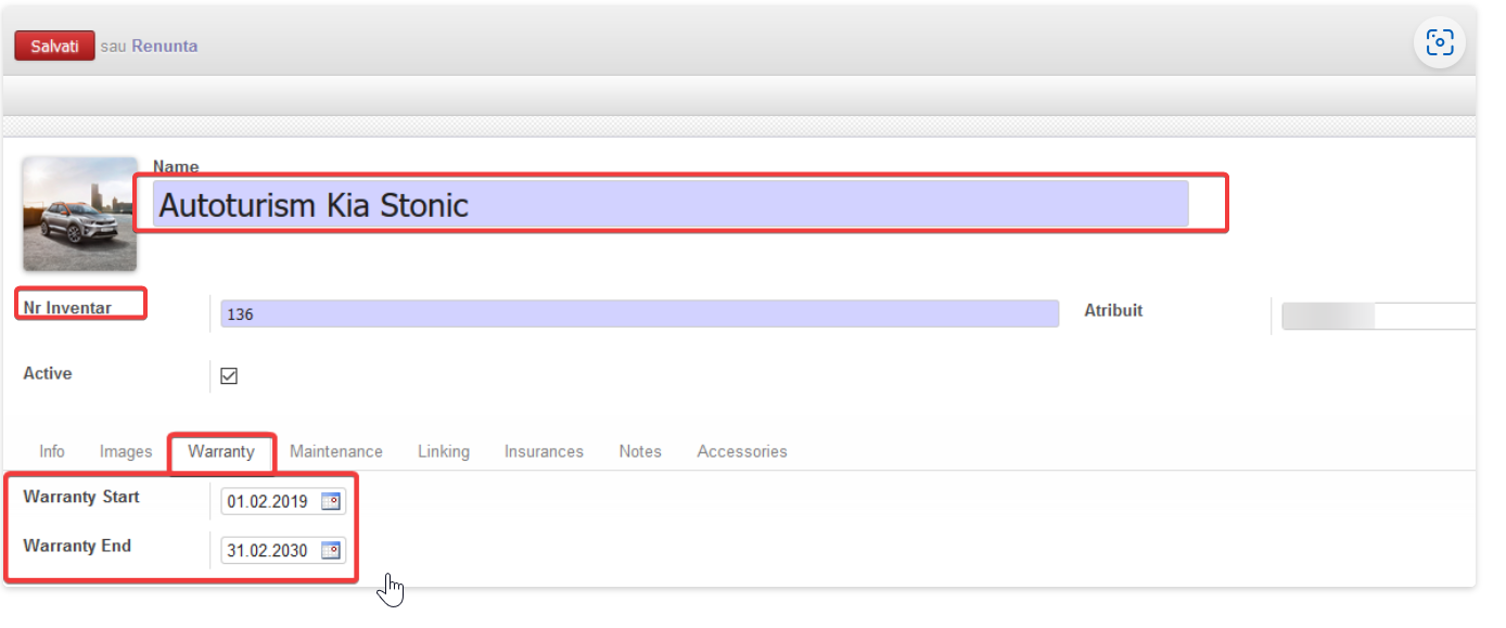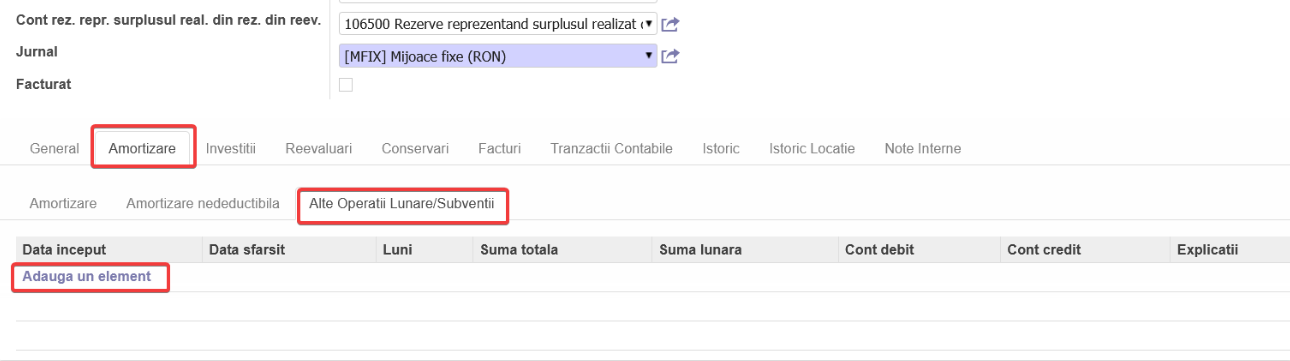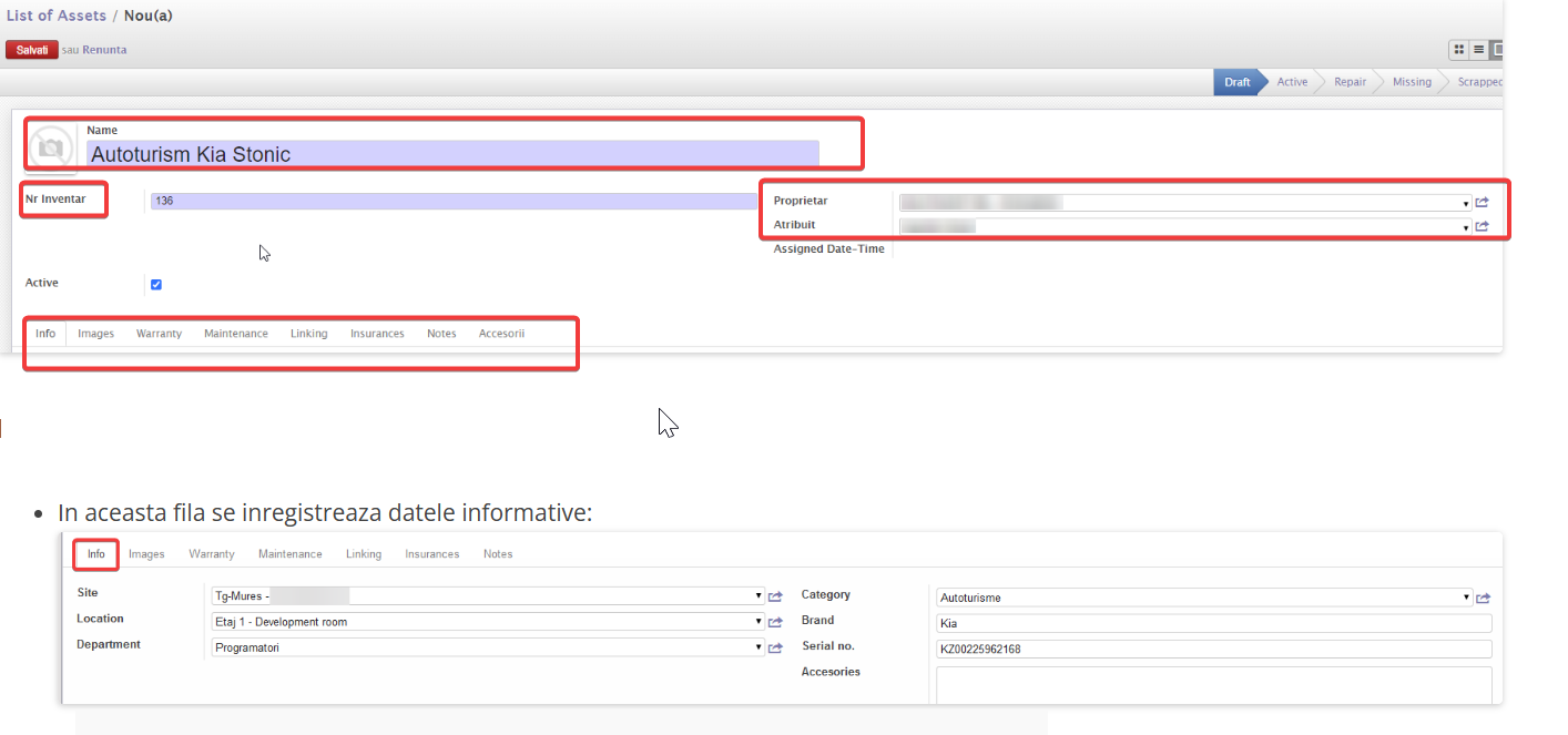 Meniu intuitiv pentru înregistrarea mijloacelor fixe.