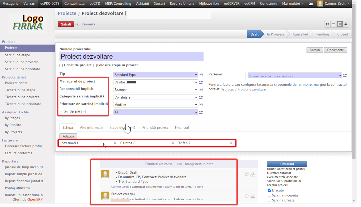 În modulul eoProjects ai o serie de instrumente care contribuie activ la bună desfășurare a proiectelor:
