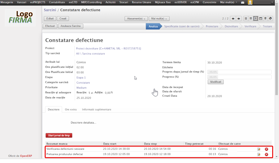 Înregistrezi Timelog pentru fiecare sarcină și etapă |