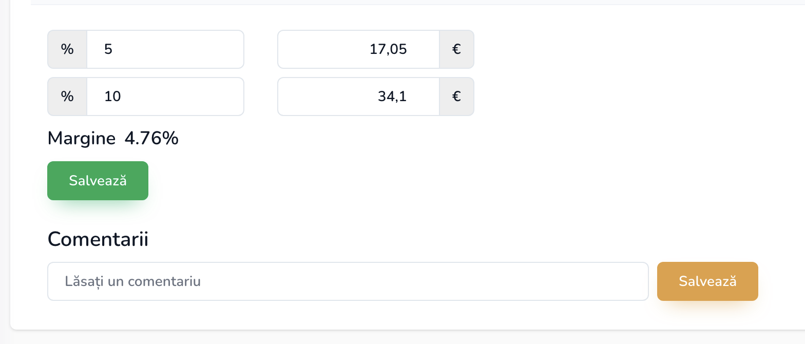 Platforma oferă utilizatorilor posibilitatea de a-și adăuga propriile marje și de a calcula prețurile finale în funcție de costurile de producție și de profitabilitatea dorită. Astfel, clienții pot să-și ajusteze ofertele în funcție de cerințele specifice ale fiecărui proiect sau client.