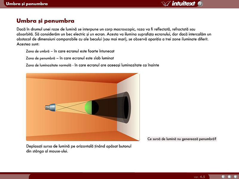 Lecţiile Interactive de Fizică INTUITEXT redau fenomene şi procese de bază în studiul fizicii, care sunt greu sau imposibil de explicat cu ajutorul materialelor didactice clasice (de exemplu atracţia gravitaţională sau propagarea undelor seismice). Produsul se bazează pe modelarea numerică şi pe tehnicile de simulare virtuală.