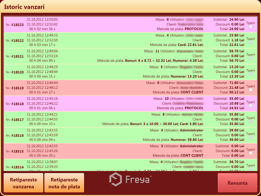 O functionalitate desebit de utila in toate cazurile cand este necesara retiparirea notei de plata, a bonului fiscal sau pur si simplu verificarea vanzarilor. In partea dreapta exista o bifa care verifica daca a fost tiparit sau nu bonul fiscal.