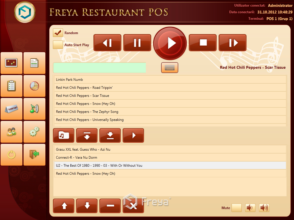 Cu solutia Freya Restaurant, veti putea avea control asupra muzicii din locatie, prin playlist direct din POS. Astfel, veti evita sa ascultati acelasi post de radio toata ziua sau sa fie schimbat playlistul in lipsa dumneavoastra.