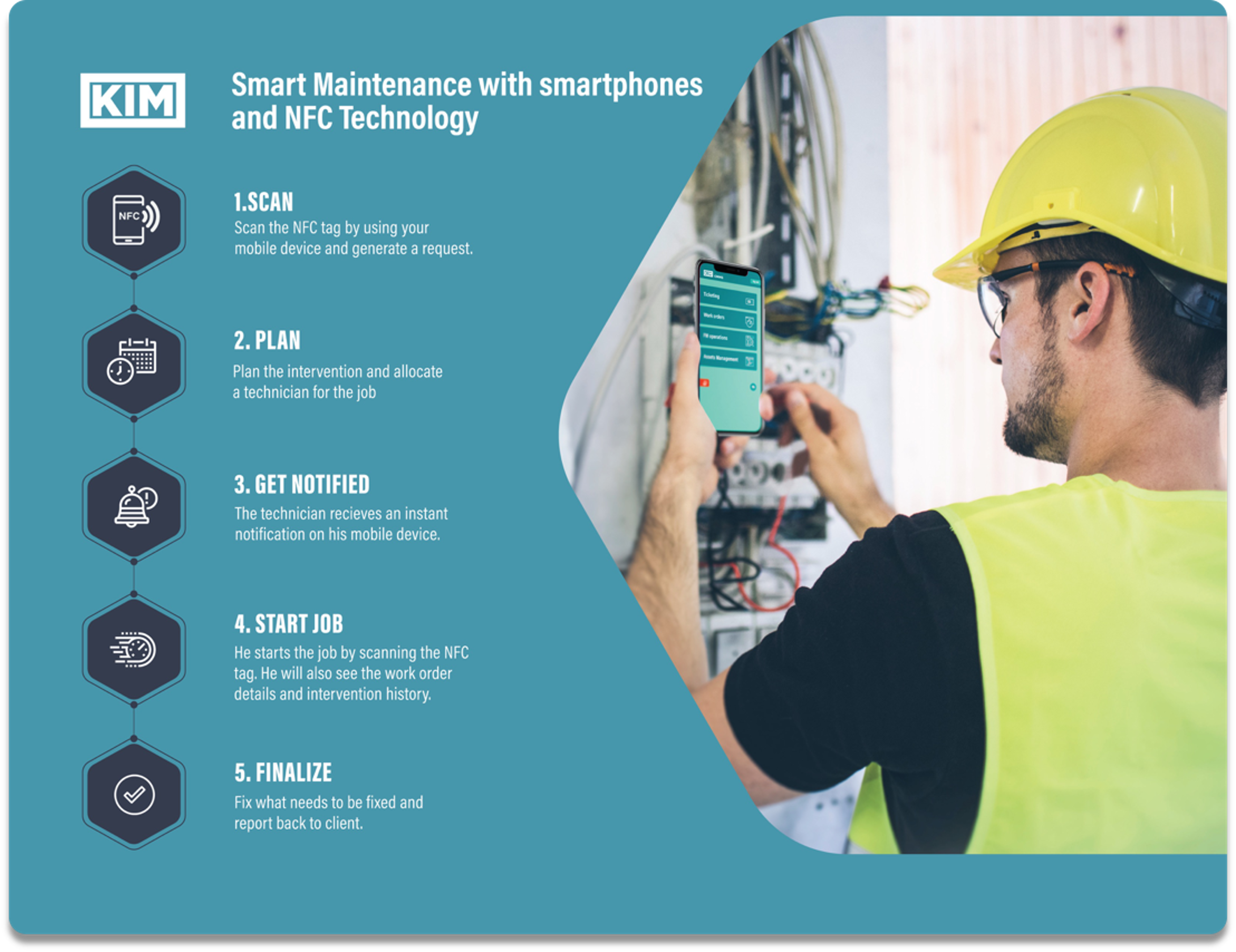 KIM for Field Services este o suita de module software, implementate SaaS (Software-as-a-Service) special conceputa pentru automatizarea proceselor din teren, in vederea eficientizarii resurselor si cresterea transparentei respectiv calitatii serviciilor catre clienti.