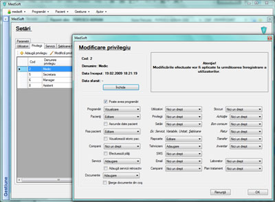 Controlați în detaliu funcționalitatea MedSoft și privilegiile utilizatorilor: