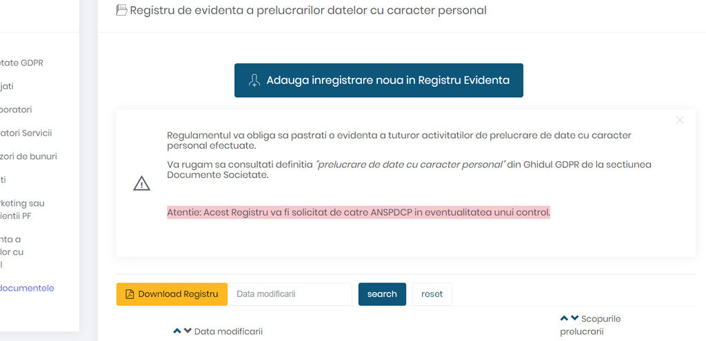Regulamentul va obliga sa pastrati o evidenta a tuturor activitatilor de prelucrare de date cu caracter personal efectuate si platforma va ofera acest registru intr-un mod simplu de utilizat.