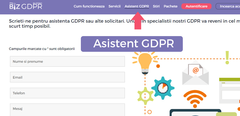 Prin accesul la platforma puteti accesa suportul unui specialist GDPR care sa va ghideze sau sa va consilieze in cazul unui control al ANSPDCP.