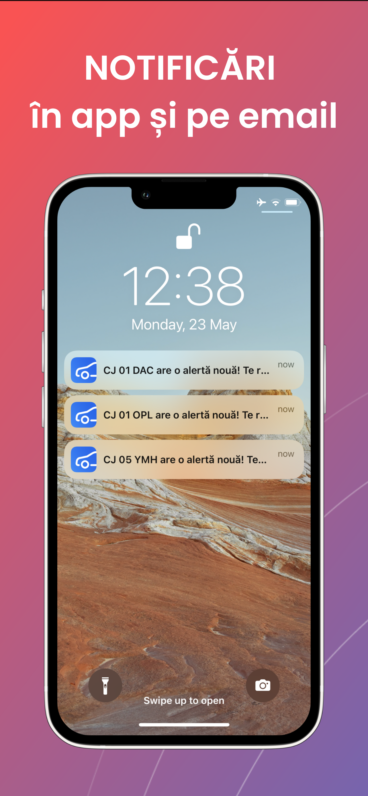 - setezi până la 50 de tipuri de notificări: RCA, Rovinieta, ITP până la autorizații ISCIR sau certificate LARM