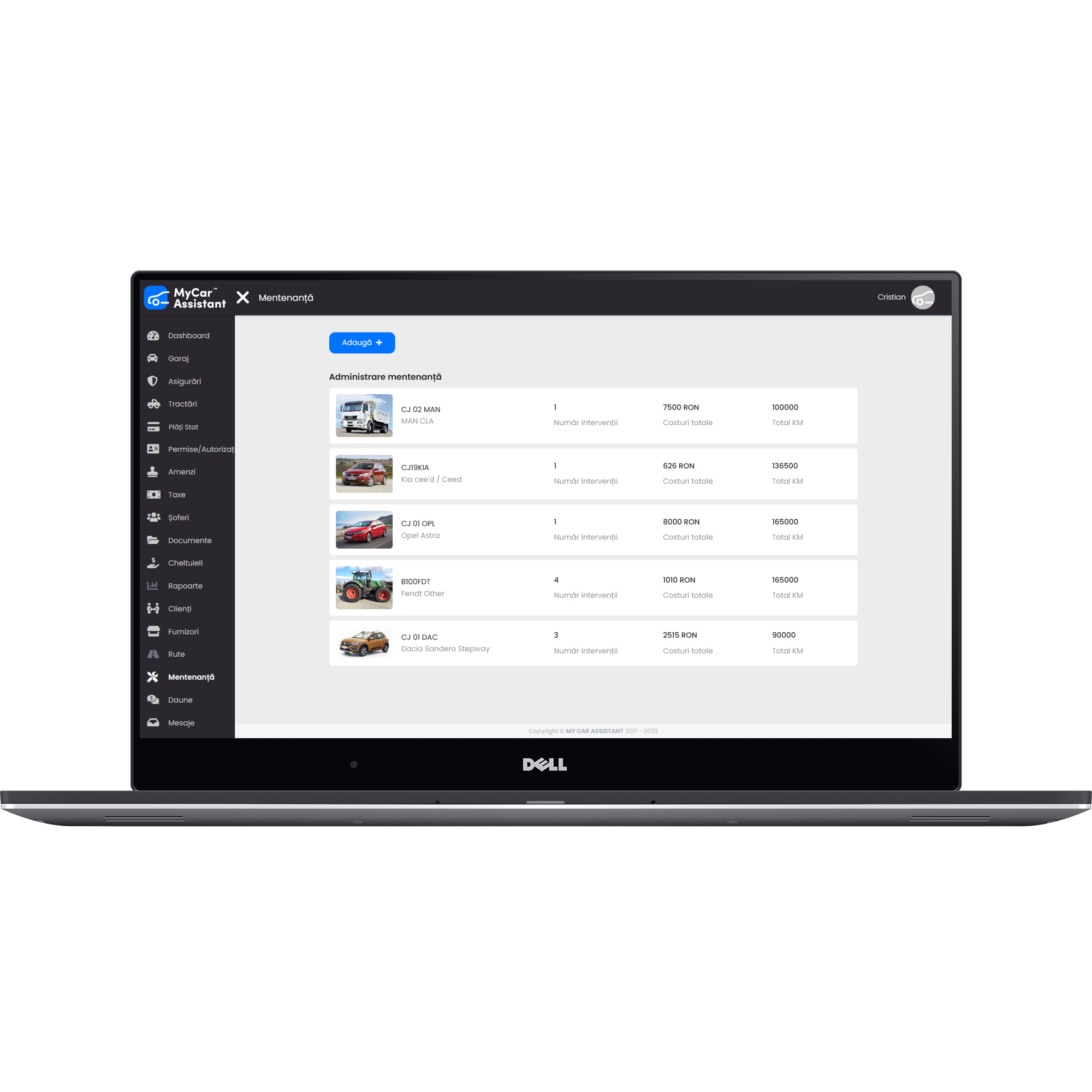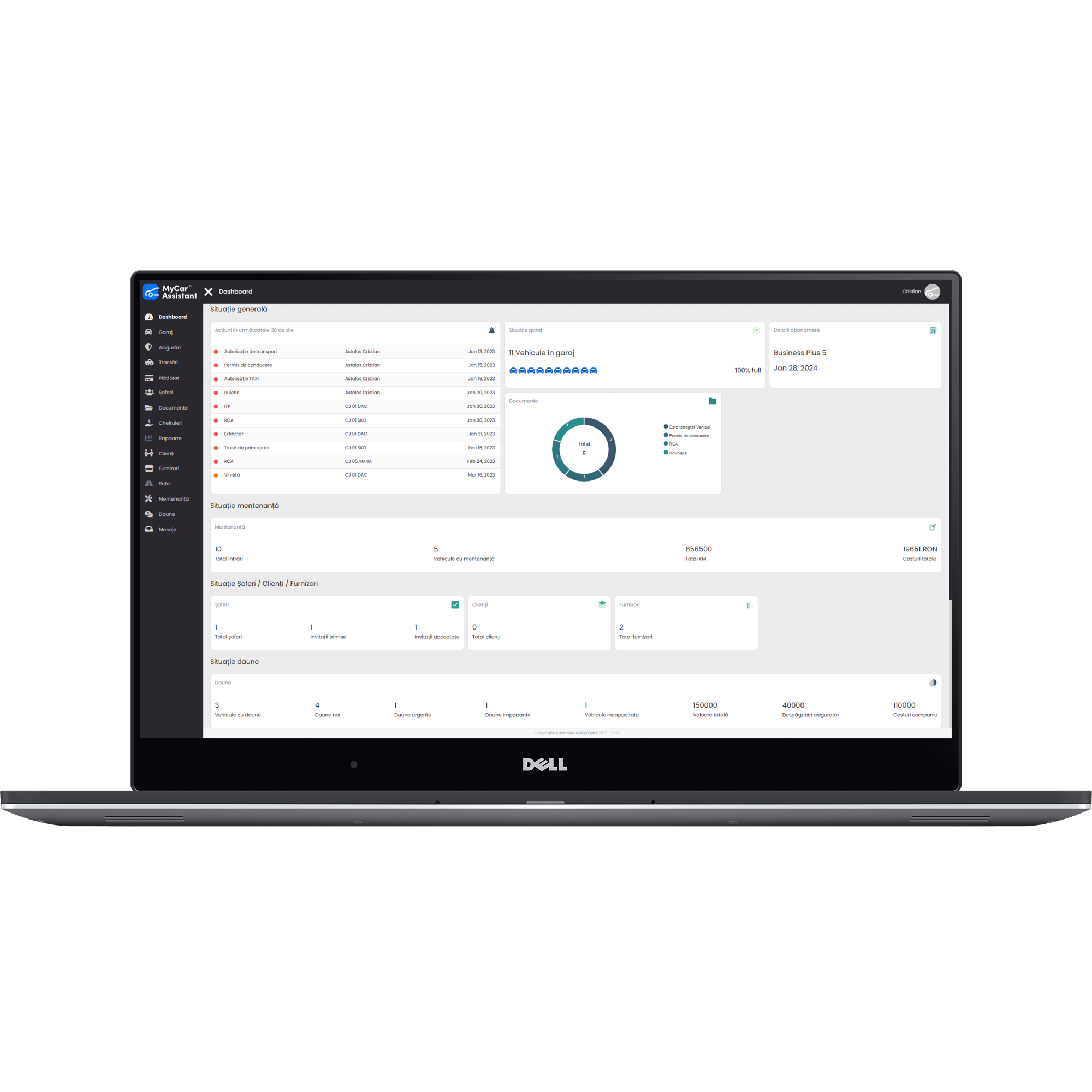 Gestionează flota cu MyCar Assistant și economisești timp și bani! Administrezi documentele care expiră, revizii, daune, costuri, șoferi și optimizezi flota prin luarea deciziilor informate bazate pe date și statistici.