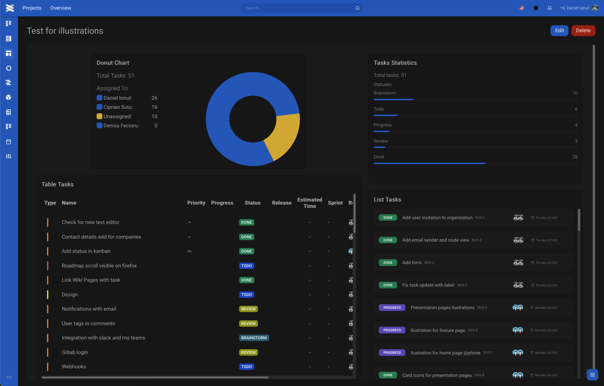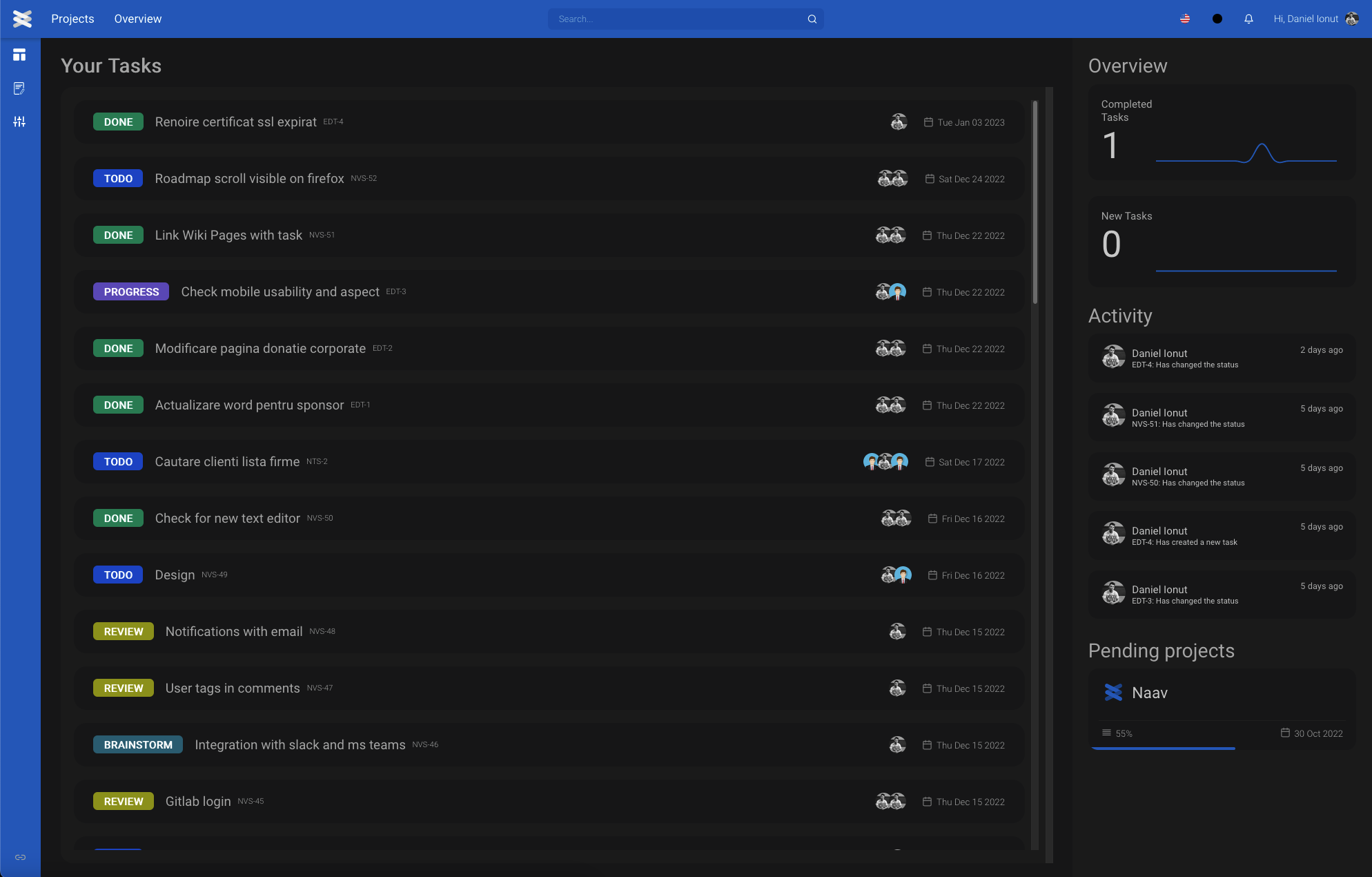 Overview dashboard - Aceasta caracteristica va ofera o privire de ansamblu asupra tuturor sarcinilor dvs., astfel incat sa puteti avea o imagine clara a ceea ce trebuie sa faceti in ziua respectiva si sa va organizati mai eficient timpul.