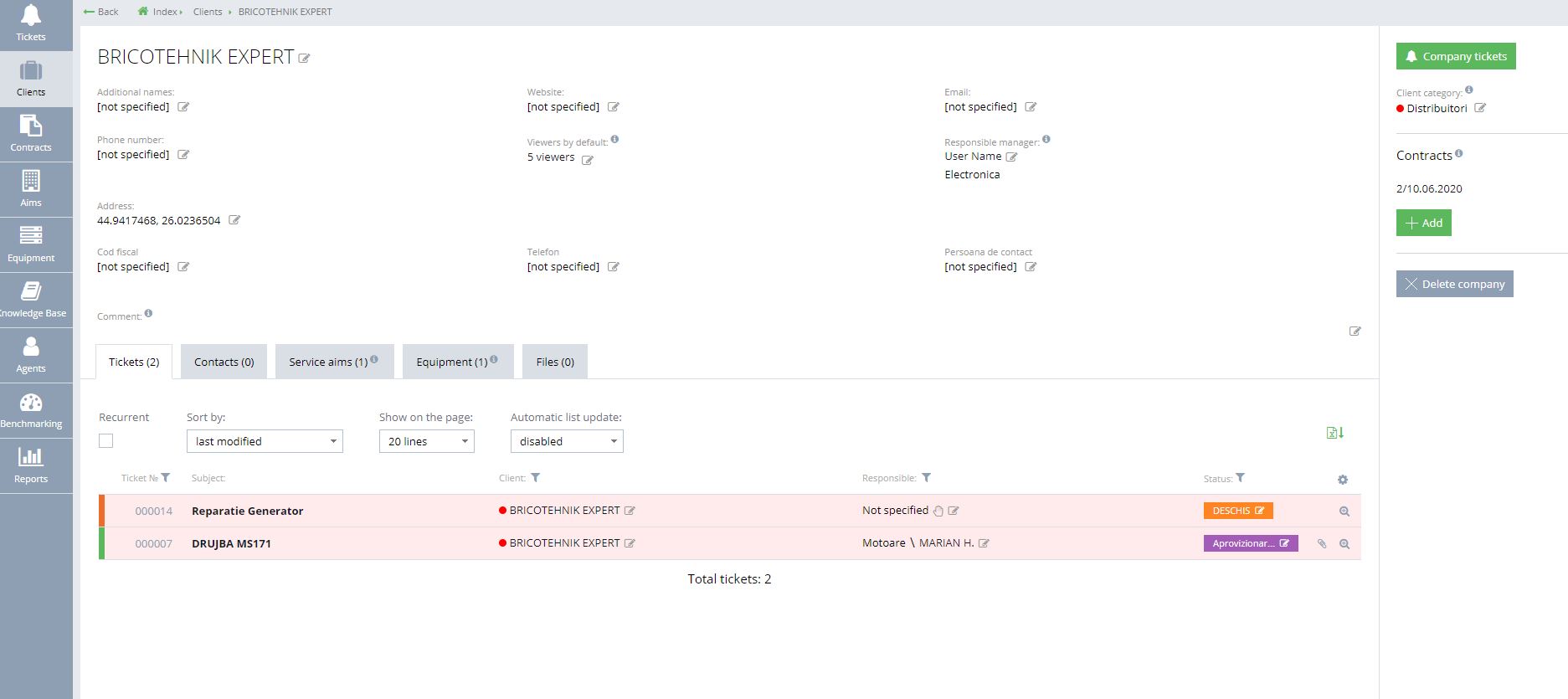 CRM detaliat cu puncte de lucru si echipamente desfasurate
