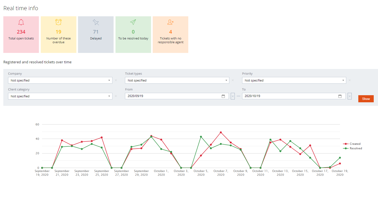 Ofera unpanou complet al stausurilor pentru fiecare tip de solictare venită de la clienti