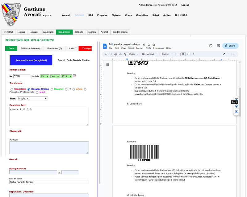 Baroul creează șabloane, definește câmpurile necesare și gestionează plățile online.