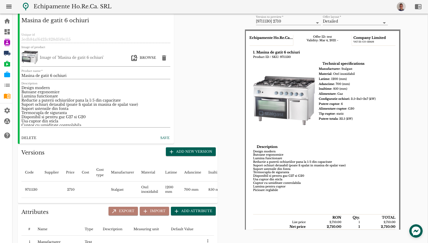 Cu doar doua click-uri se poate incepe crearea unei oferte. Produsele se pot configura cu accesorii si taxe/servicii separate pentru a putea oferii produsul ideal pentru client si a creste nivelul de up-selling. Utilizatorul poate vedea direct cat profit se poate face din acea oferta pentru a putea negocia mai usor.