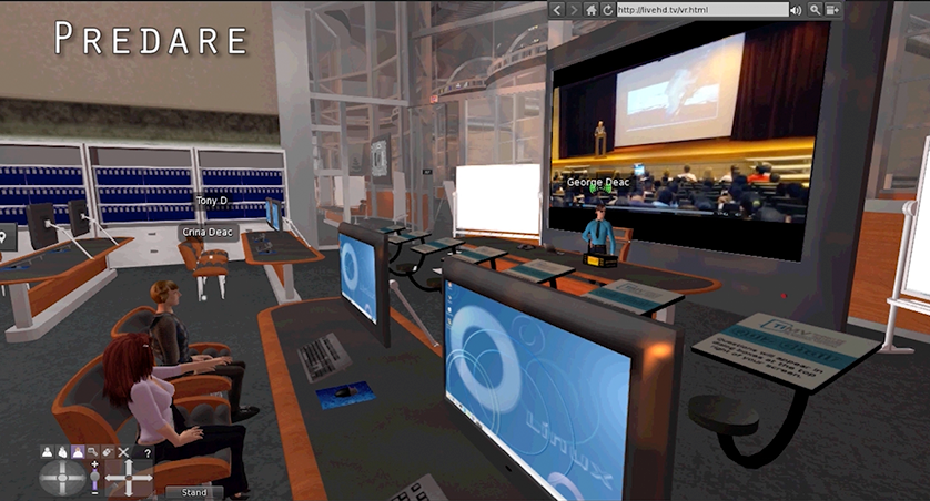 Pentru ca platforma să devină un instrument cu adevărat util în procesul educativ am dezvoltat o serie de aplicații ce sunt disponibile direct în lumea virtuală. Printre acestea se numără: Whiteboard-ul ce este disponibil în sălile de curs sub forma unor table de prezentare; ecranele de prezentare, ce permit accesarea oricărei pagini web sau a unor aplicații internet (wiki spaces, google docs, wallwisher, google forms etc.); Ecrane de studiu (tutoriale), Ecrane webcam, prin care profesorul, un invitat sau studenții pot fi afișați în timp real prin livestreaming; sistem de videoconferință, disponibil prin click pe videointerfonul de pe catedra sălii de curs, Aplicația de Screen Sharing, disponibilă prin click pe laptopul de pe catedră, ce permite partajarea în lumea virtuală a ecranului unui calculator, prin aceasta putându-se integra prezentări Powerpoint, Prezi, sau orice materiale grafice utile ca suport de curs.