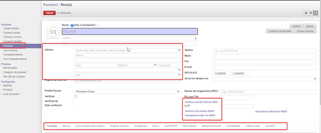Meniuri intuitive pentru configurarea informațiilor esențiale despre Furnizori și Produse.