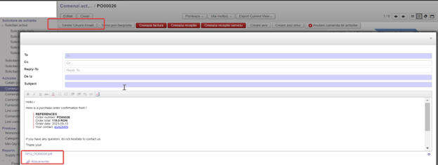 Comunicare cu furnizorii direct din sistem, personalizare mesaje și atașamente.