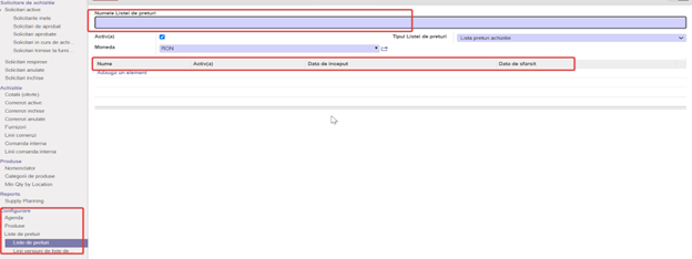 Configurare liste de prețuri agreate cu diverși furnizori și preluarea prețului aferent în comandă de achiziție, în funcție de furnizor.