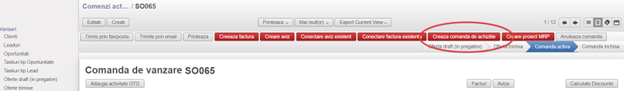 Interogarea stocului din comandă de vânzare și lansarea automată a unei cereri de achiziție în cazul în care produsul nu este pe stoc.