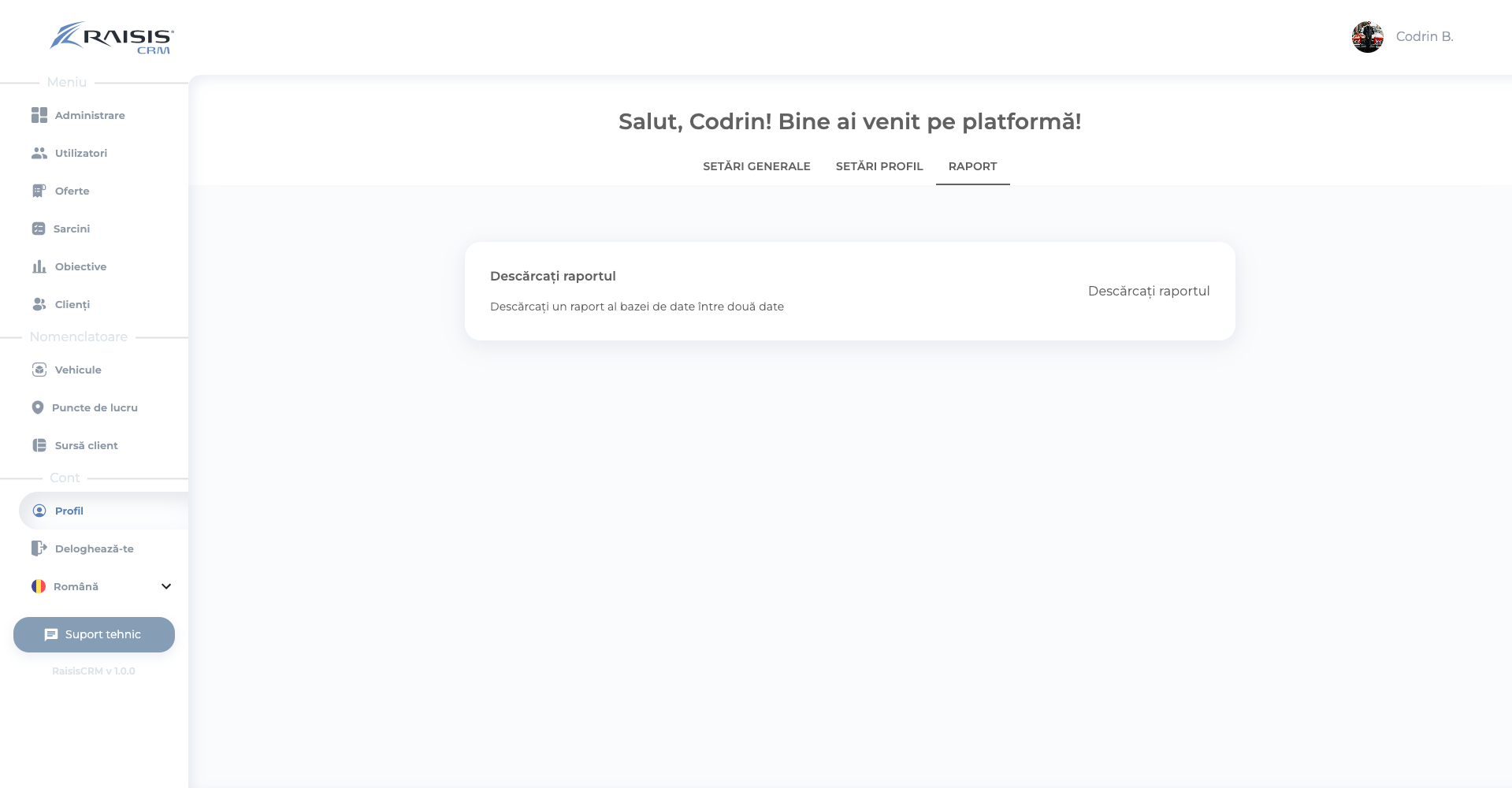 Sistemul de raportare - permite exportul unor informații detaliate despre clienți, oferte, comenzi. Exportul se poate face pe baza unui interval de timp definit de către utilizator, iar formatul în care se face exportul este de tip EXCEL.