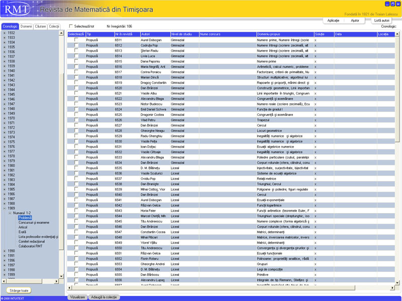 Astfel, pasionaţii de matematică se vor bucura de peste 30.000 de probleme cu soluţii şi articole structurate după numărul şi data apariţiei, titlu, domeniu tratat sau autor.