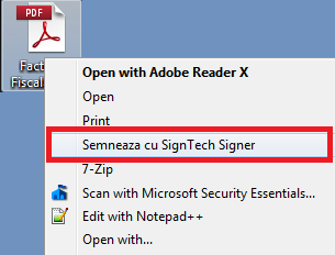 Cu ajutorul acestei solutii, puteti semna un document printr-un simplu click-dreapta pentru un fisier pdf. Solutia este extrem de usor de utilizat si intuitiva si poate fi usor adaptata in functie de nevoile clientului si de schimbarile legislative.