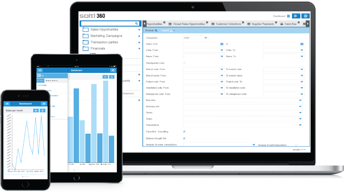 SOFTONE 360 este o aplicație de mobilitate a afacerii care te ajută să îți reduci costurile de IT, să îți îmbunătățești productivitatea și timpul de lucru, să îți crești vânzările și să îți simplifici procesele de business. Soluția îți oferă acces oricând și de oriunde te-ai afla la informațiile de business, direct de pe telefonul mobil sau tabletă, fiind versiunea mobilă a aplicației SOFTONE CLOUD ERP.