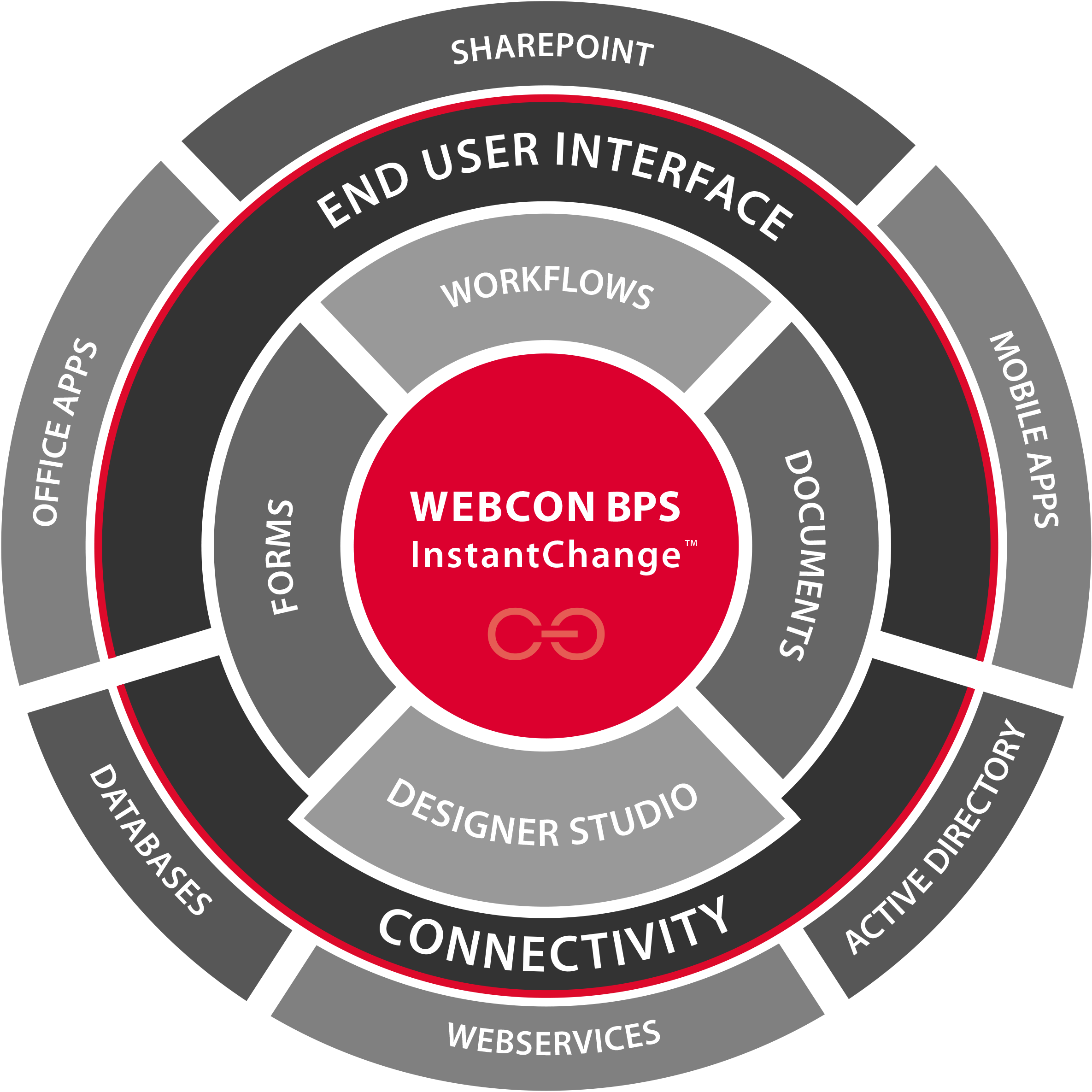 Tehnologia revoluționară InstantChange™ livrată de WEBCON BPS oferă avantaje unice față de aplicațiile software clasice de gestionare a proceselor de afaceri, oferind capabilitatea de a modifica aplicațiile în timp real, printr-un motor grafic de management al aplicației care poate fi stăpânit ușor chiar de către propriul dvs. departament IT. Aplicația software va fi dezvoltată astfel fără a se scrie cod de la zero, standardizând astfel modul de întreținere al acesteia, oferind inclusiv capabilități de auto-documentare care vor asigura continuitatea de business pe termen lung.