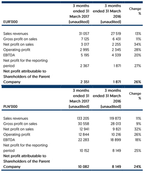 - Am început anul 2017 bine. În primele trei luni am observat un interes sporit pentru soluțiile noastre de autentificare și mobile, similar ultimei perioade a anului trecut. Mă aștept ca această tendință să fie menținută și în perioada următoare. Sunt de asemenea mulțumit de veniturile generate de noile soluții din portofoliul nostru, precum serviciile de procesare a cardurilor, care confirmă o cerere a pieței în acest domeniu, pe care noi am identificat-o mai devreme. - a comentat Piotr Jeleński, Președintele Consiliului de Administrație al Asseco South Eastern Europe S.A.