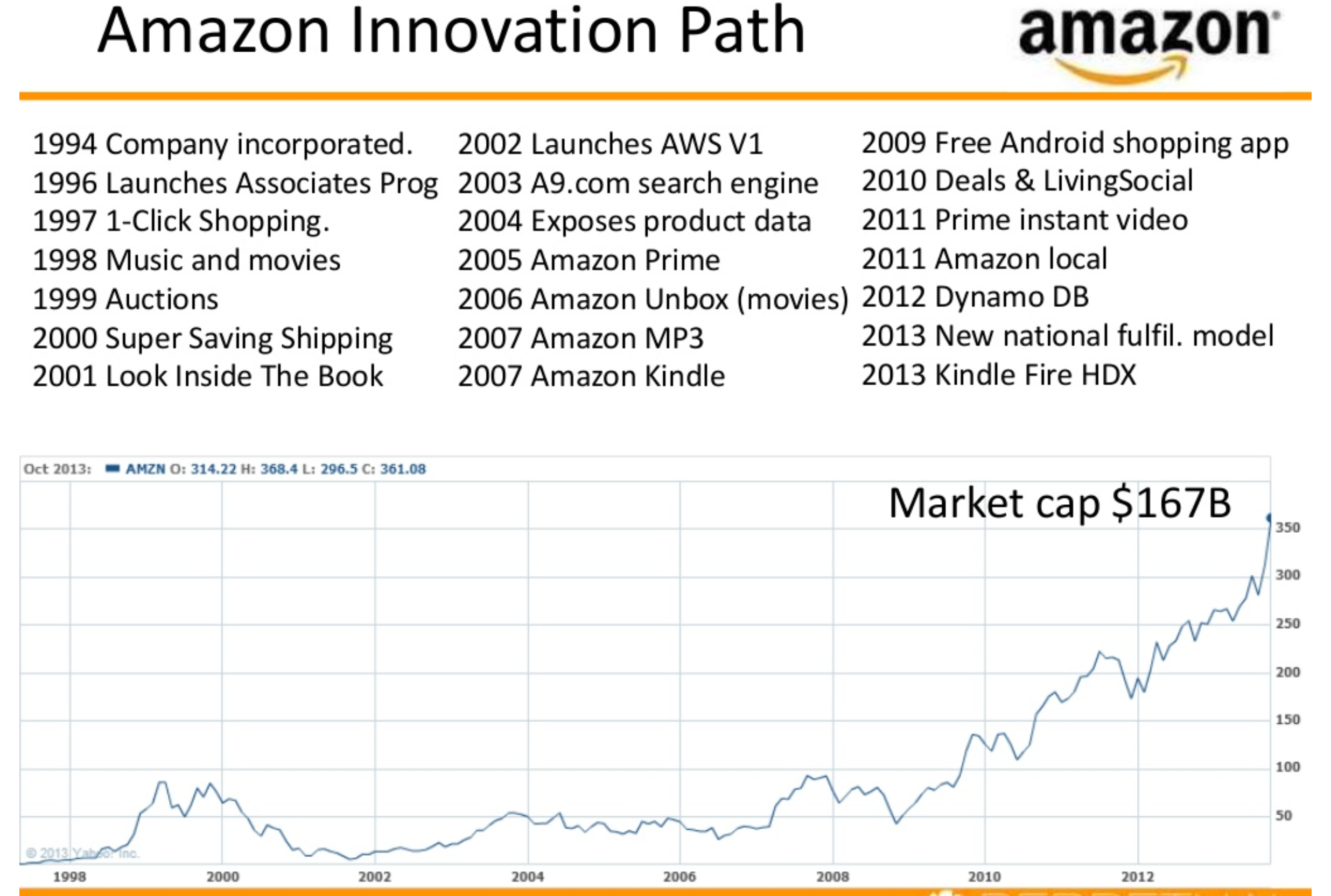 Conform lansărilor Amazon, aceștia au adoptat strategia fast-followers pentru majoritatea produselor și serviciilor: