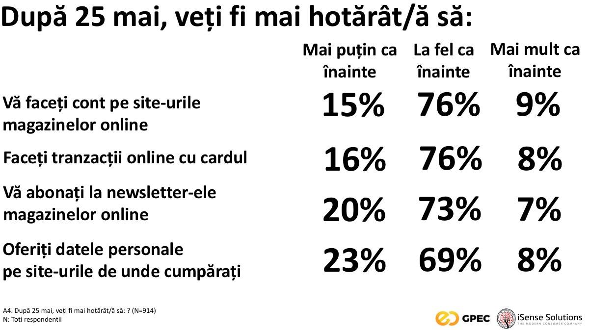 În ceea ce privește regulamentul GDPR, cei mai mulți dintre cei chestionați au răspuns că vor avea același comportament ca și până acum.
