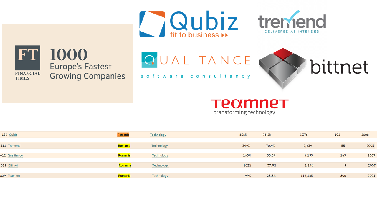 Cea mai bună poziţie din clasament a fost ocupată de start-up-ul orădean Qubiz, care este specializat în dezvoltarea de soft pentru clienţi din vestul Europei. Tremend, o companie de soft şi consultanţă deţinută de 3 antreprenori locali, lucrează pentru clienţi internaţionali, dar a început să dezvolte şi soluţii proprii.