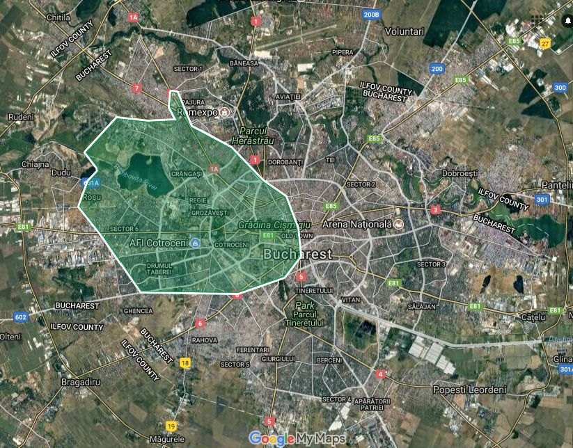 Zona aproximativă de acoperire a rețelei publice Simfony Mobile: