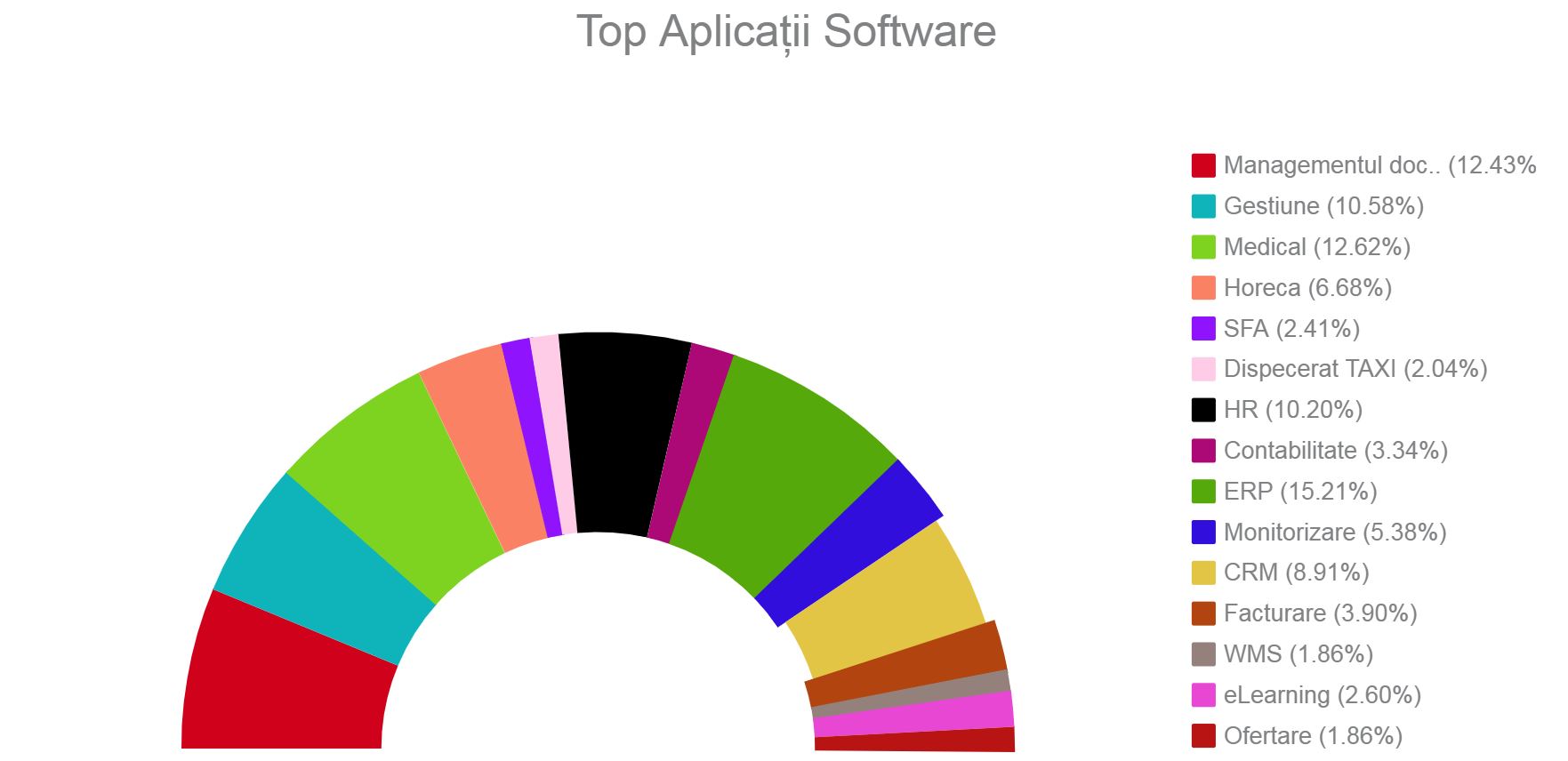 Tipurile de aplicații software cu cel mai crescut apetit de achiziție și de implementare includ: ERP (15%), software medical (12.62%), managementul documentelor (12.43%), software de gestiune (10.58%), HR (10.20%), CRM (8.91%).