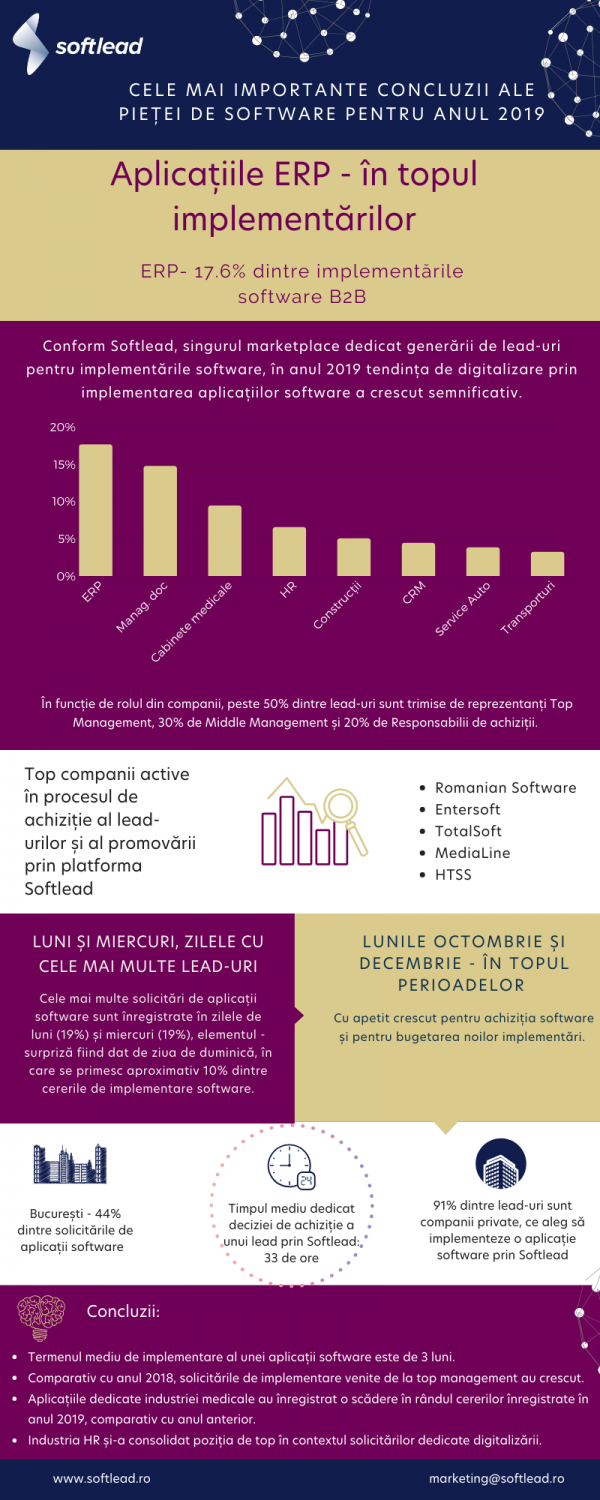 Sunt considerate a fi unele dintre cele mai complexe aplicații software special gândite pentru a eficientiza fluxurile de lucru din companii mari și foarte mari, iar în ultimii ani se află pe un trend ascendent al implementărilor și în România. Este vorba despre aplicațiile de tip ERP, ce au prezentat un apetit crescut în anul 2019, comparativ cu anul anterior.